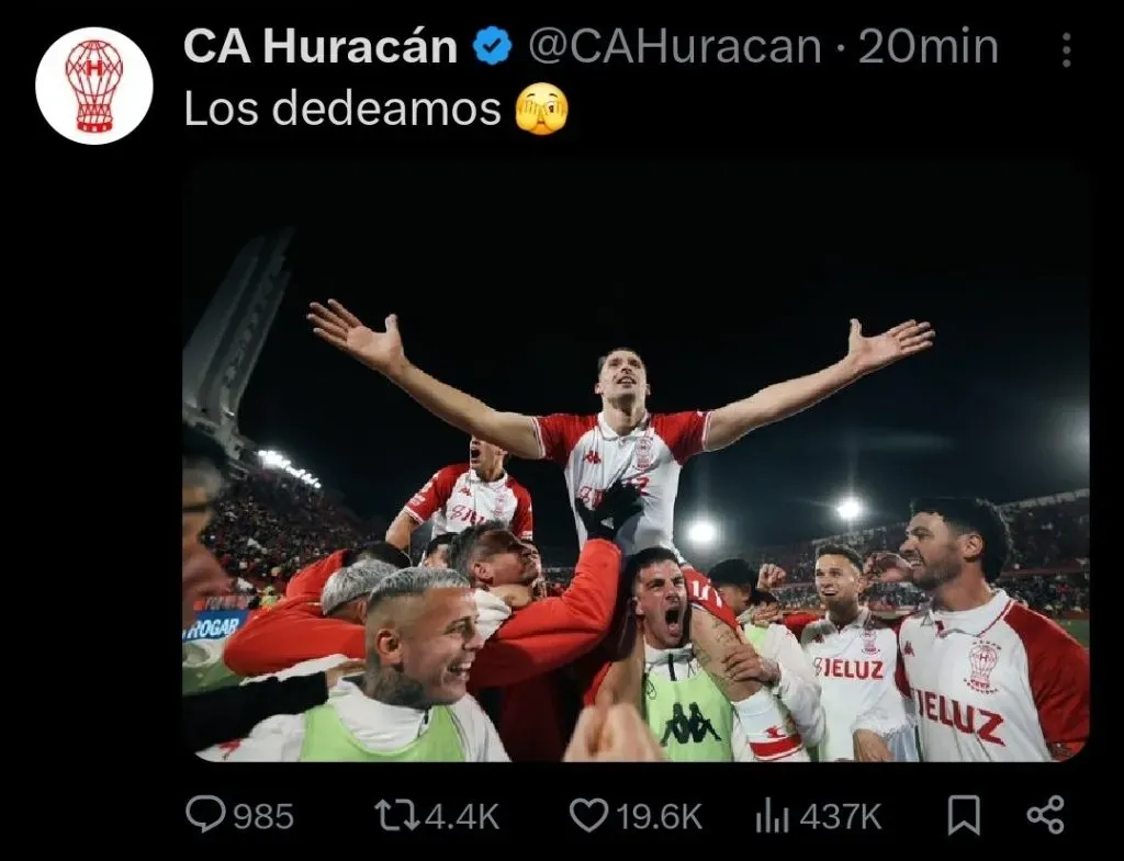 Pero la historia no terminó con el pitazo final. Huracán, en un gesto que generó controversia, publicó un mensaje en sus redes sociales que apuntó directamente a la dirigencia de Boca. “Los dedeamos”, fue el escueto pero contundente mensaje que acompañó una foto del equipo festejando el gol de Miljevic. Rápidamente, el posteo se viralizó y desató una ola de comentarios y especulaciones. La publicación fue borrada a los pocos minutos, pero el daño ya estaba hecho.